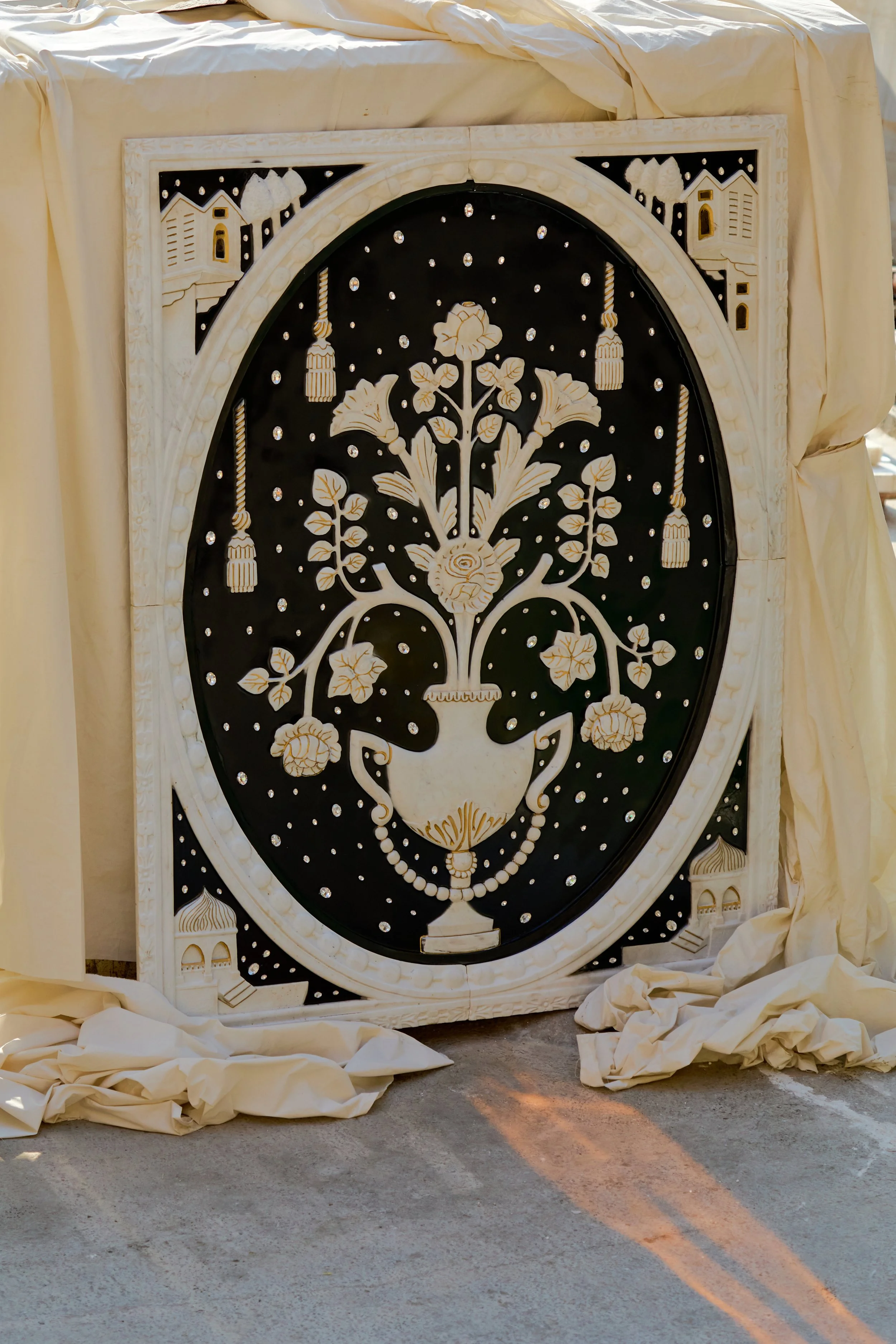 A marble bloom adorned with jewelry, Gilded Blossom embodies resilience and renewal.