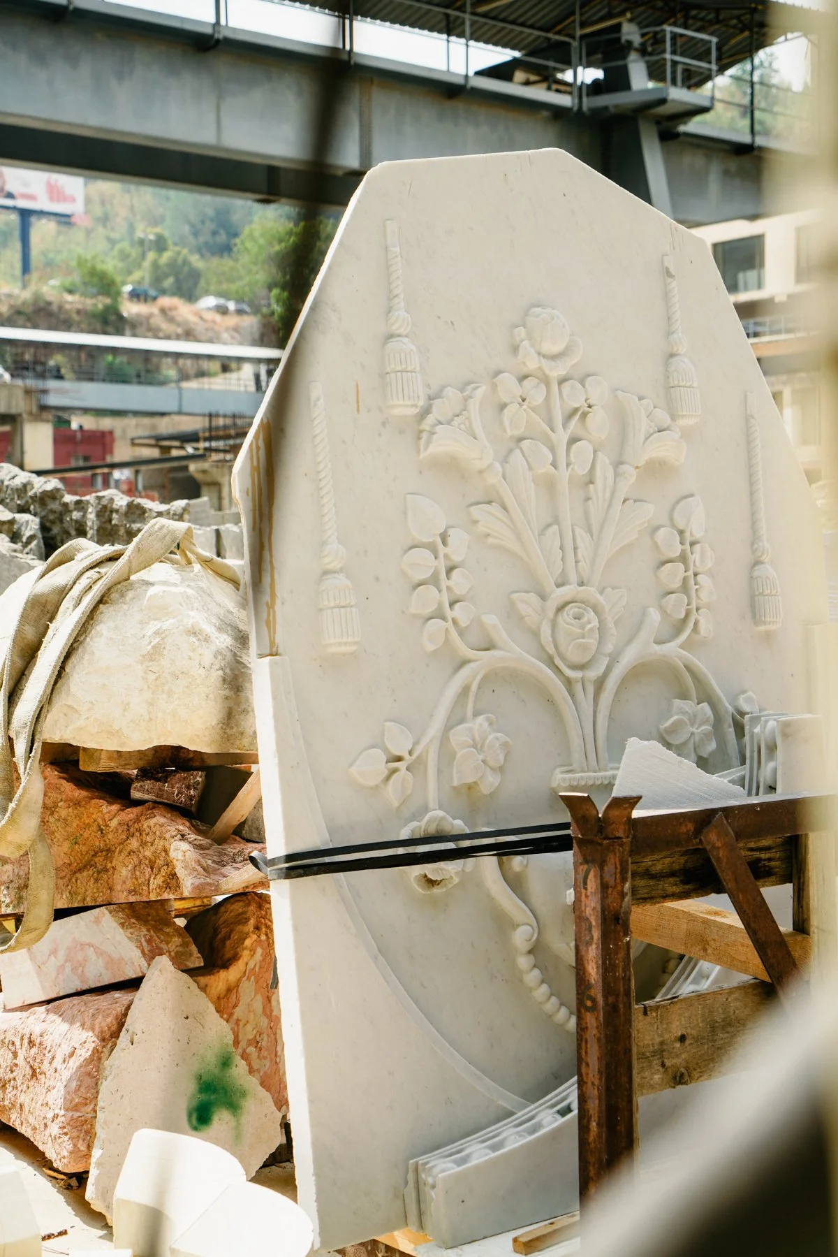 The work evokes rebirth, transforming stone into a living symbol of endurance and beauty.