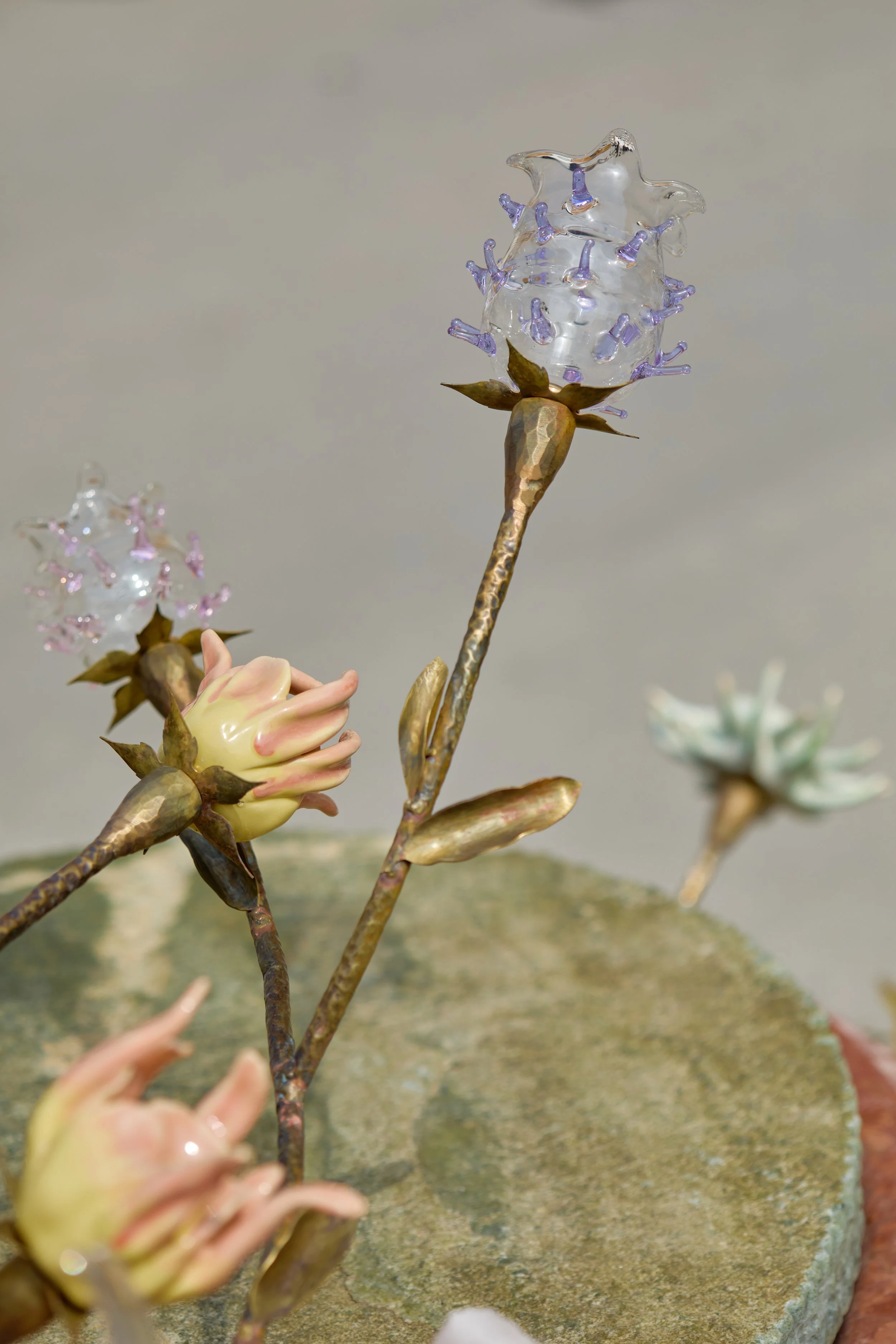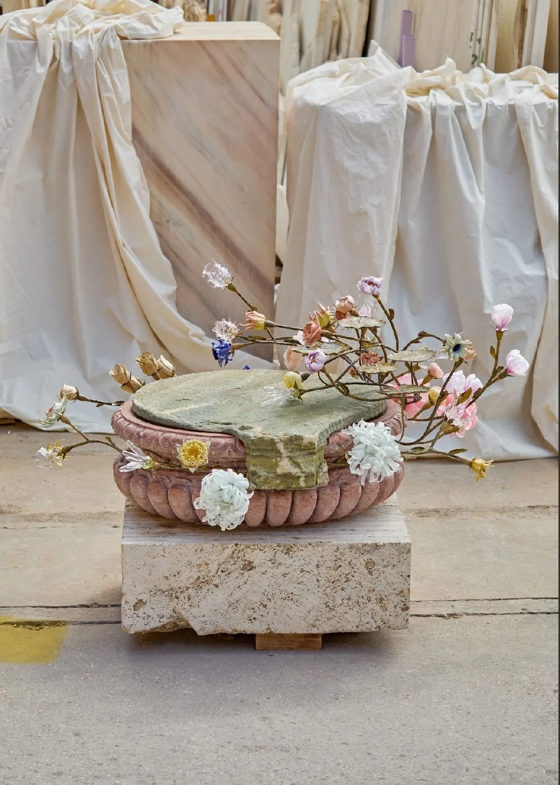 Leftover Love Letter is a collection born from poetic ruins: mosaic floors, eroded columns, forgotten fountains. These fragments are reimagined into objects that bloom in glass, brass, ceramic, wood, and silk.