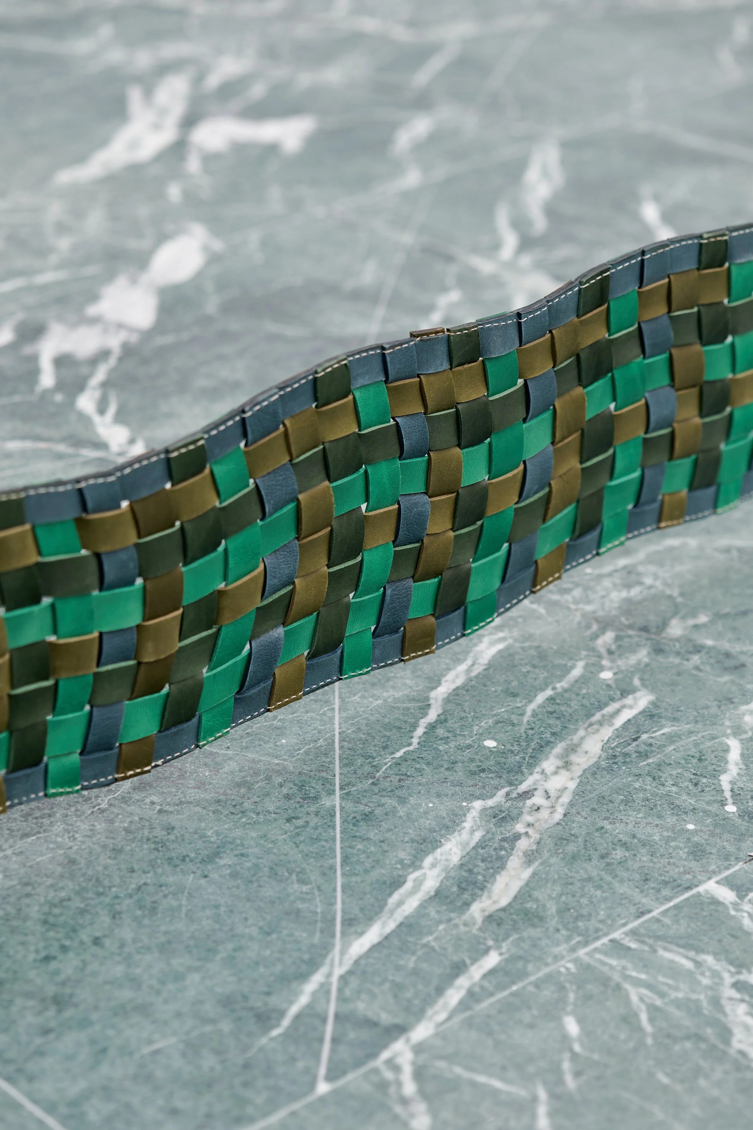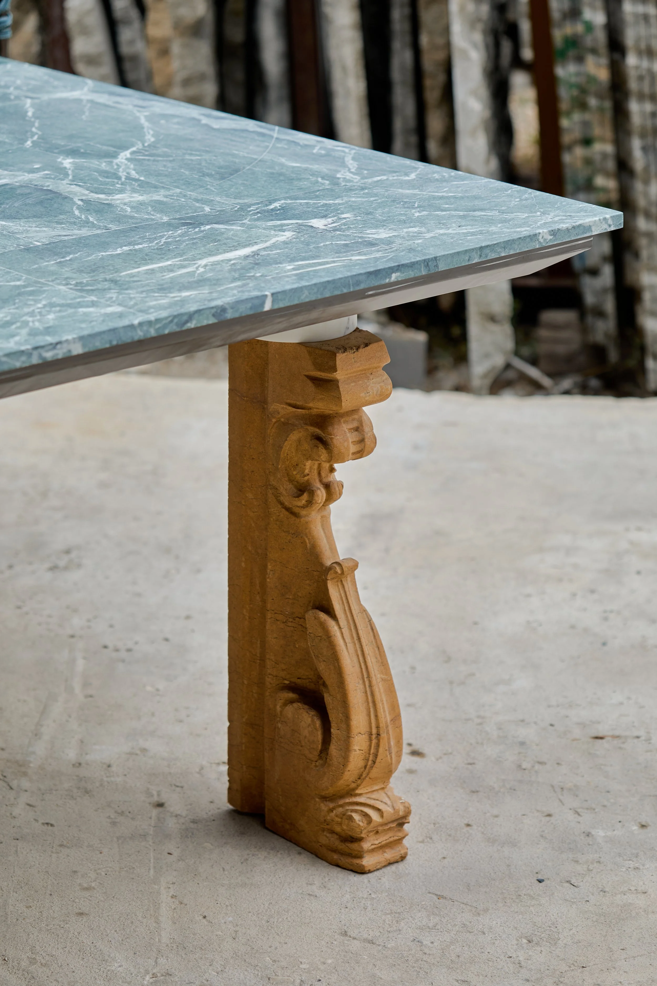 Curvaceous marble legs and swirling forms celebrate individuality and organic rhythm.