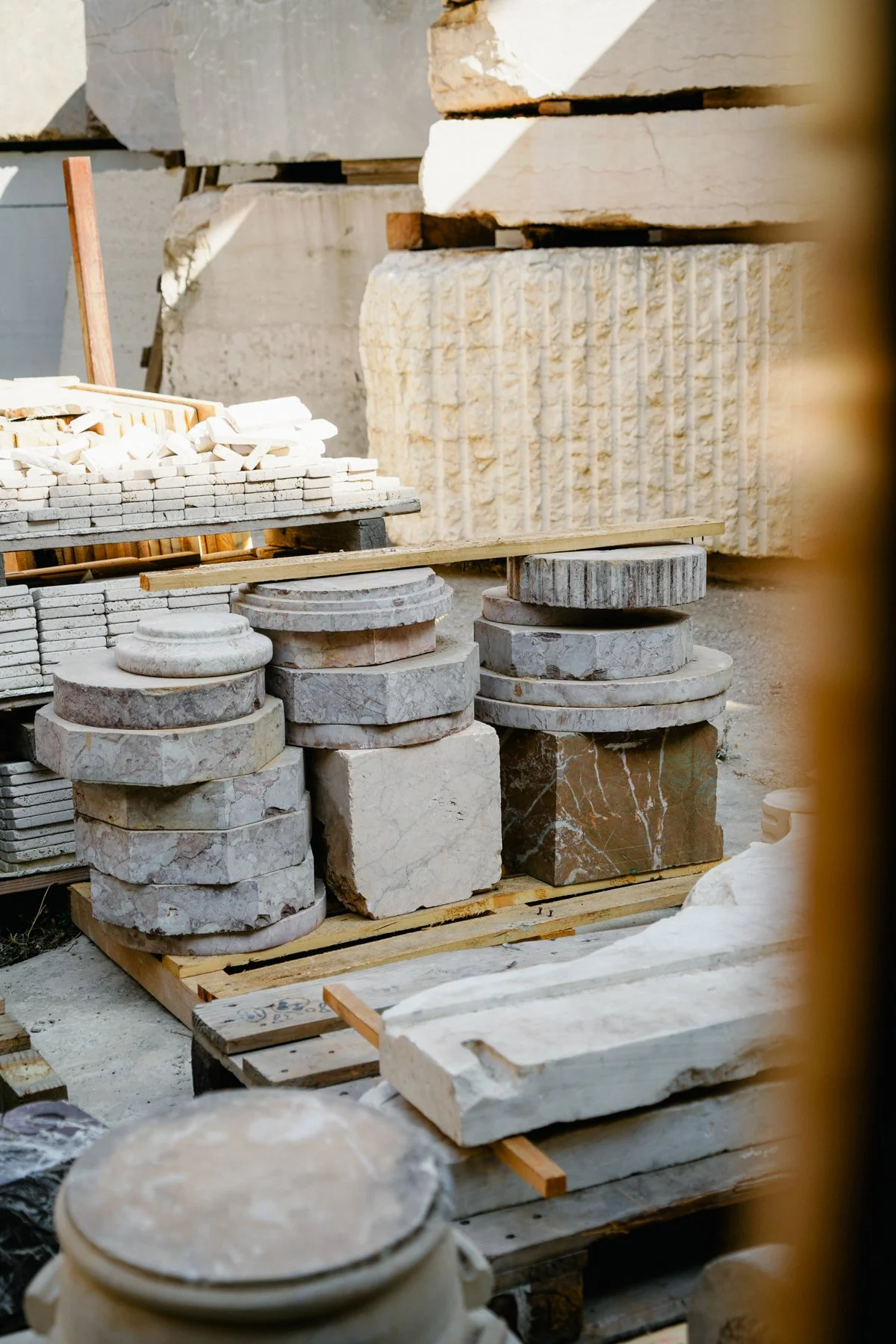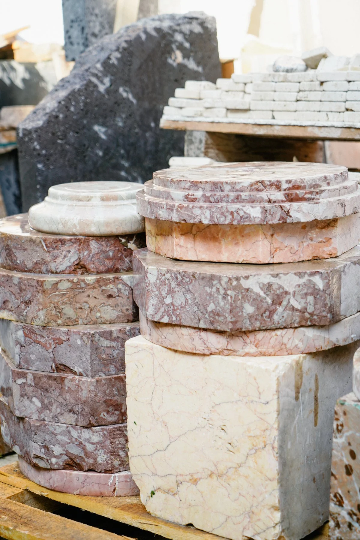 As Found arranges discarded columns and fragments into a new sculptural logic, pairing weight with lightness, ruin with precision.