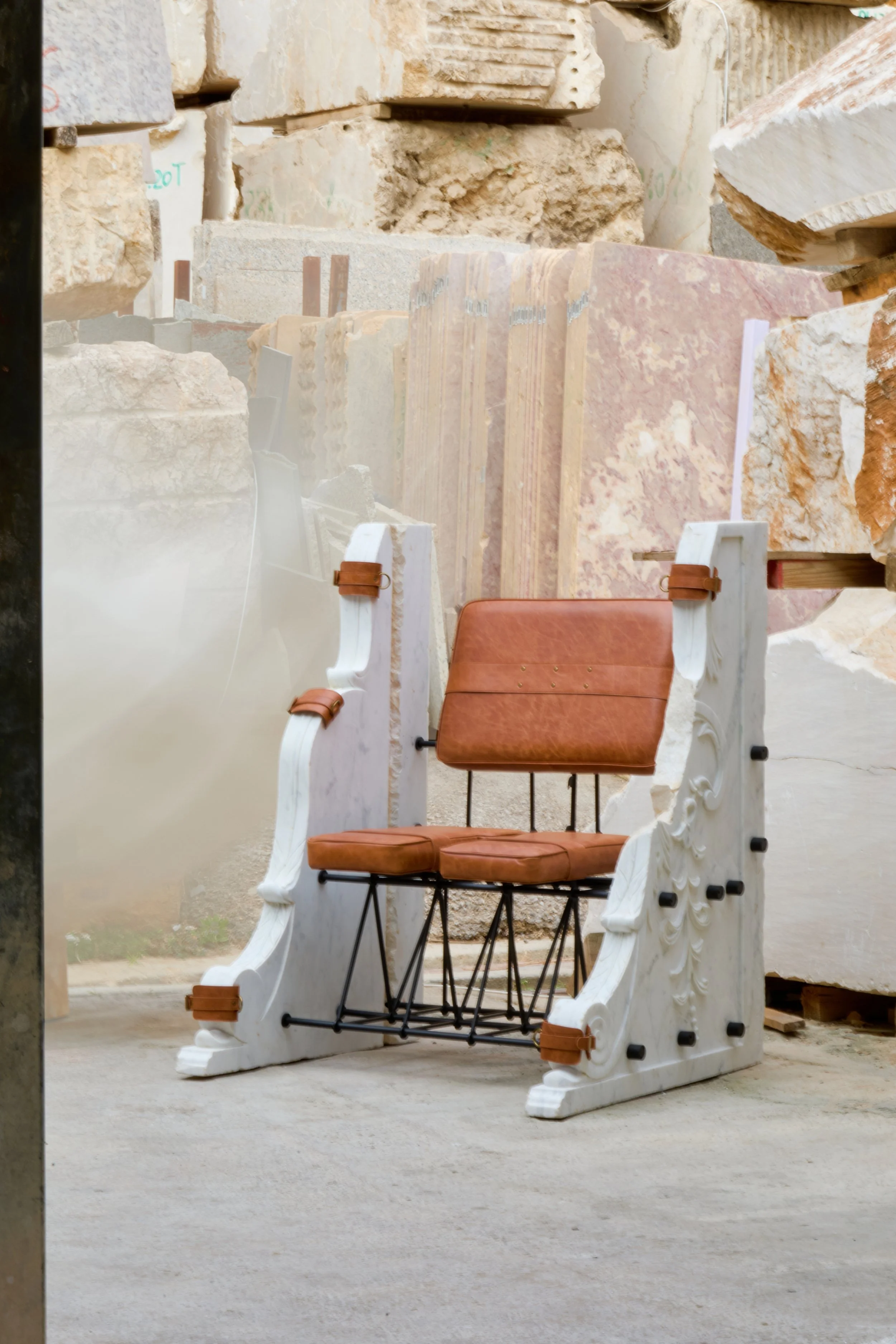 Steel, leather, and voids balance restraint and release, sensuality and ritual.