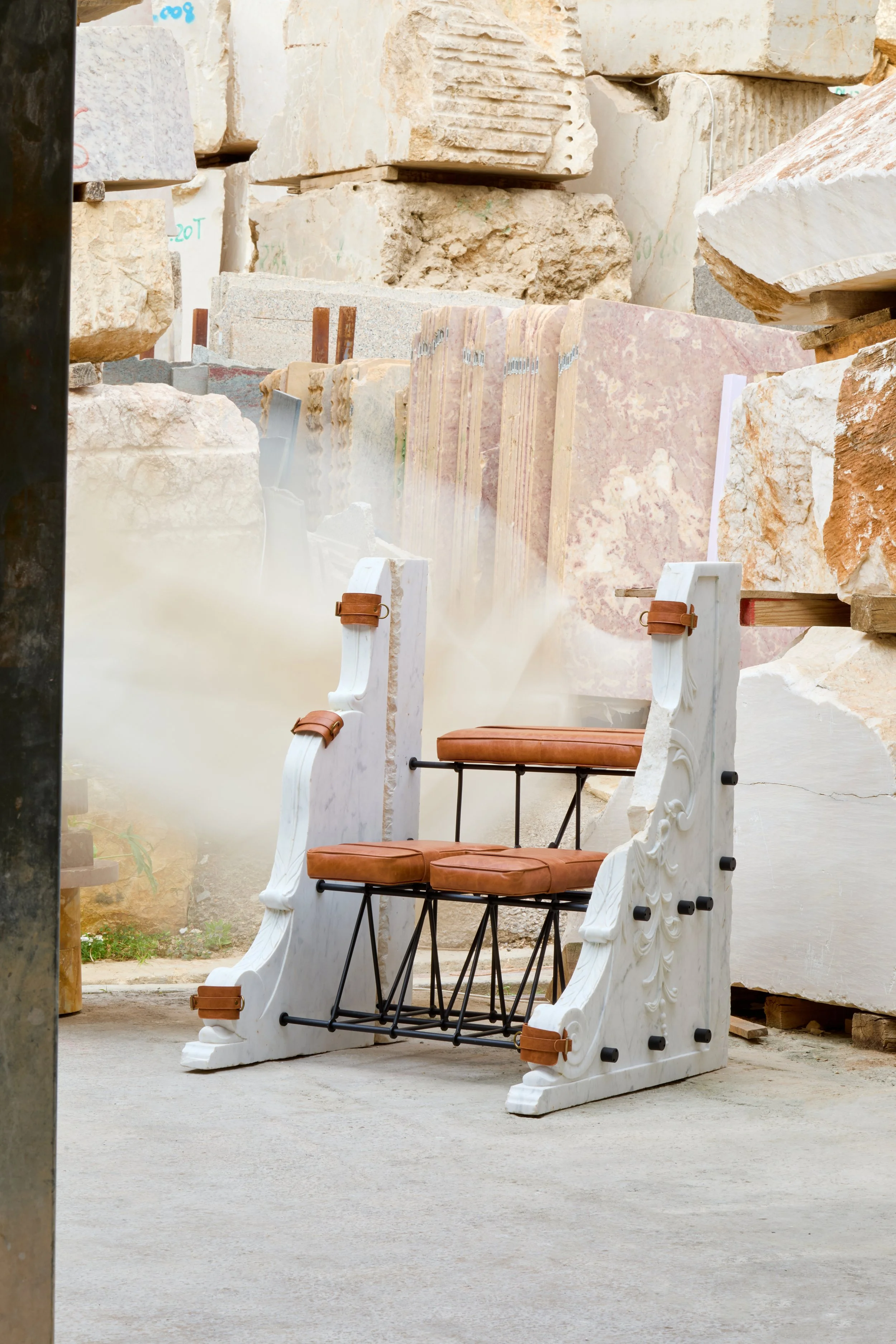 Liturgie du Corps reclaims sacred marble, transforming fragments of authority into a structure of intimacy and liberation.